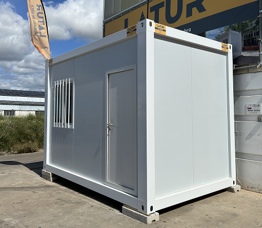 Módulo prefabricado grande 4 x 2,45 m ideal como oficina de obra, caseta habitable o almacén. Robusto, aislado térmica y acústicamente, fácil de montar y personalizable. Perfecto para proyectos en entornos exigentes o zonas rurales.